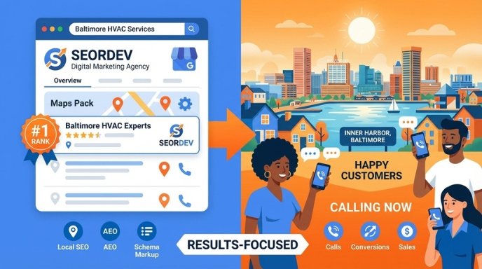 Boost your Baltimore HVAC business with expert Local SEO by SEORDEV. Get found, get calls, and grow fast with AI-powered strategies.